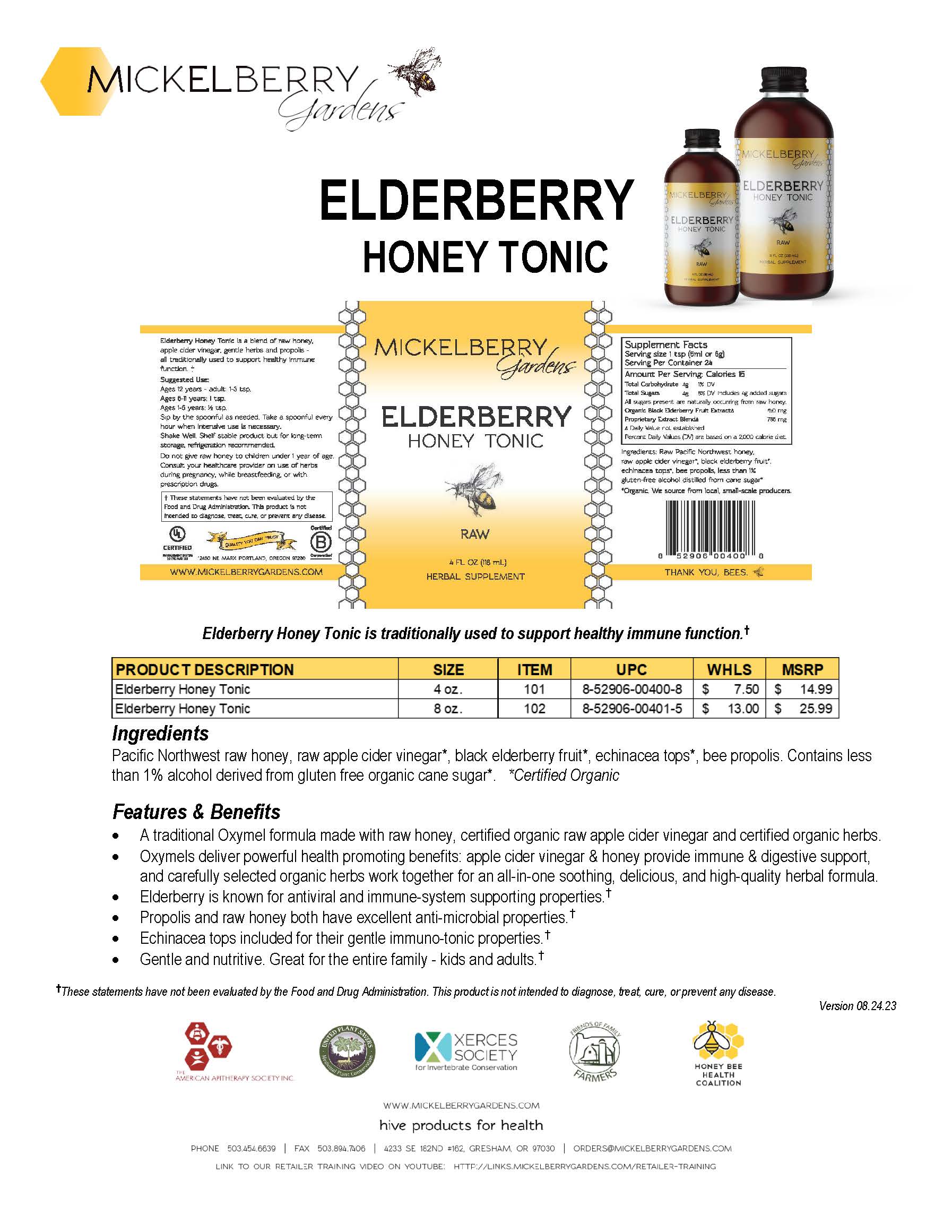 Our Elderberry Honey Tonic is available in a 4 oz. and 8 oz. glass bottle. Also available as a 2 oz. spray!