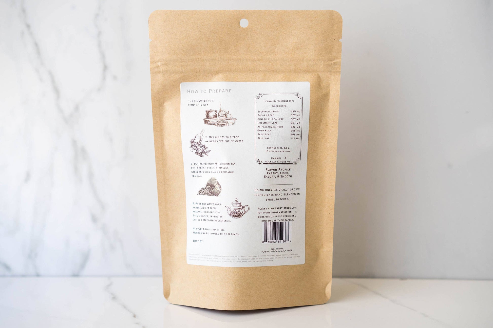 Ashwagandha Root, Bacopa Leaf, Gingko Biloba Leaf, Gotu Kola, Rosemary Leaf, Sage Leaf, Skullcap
