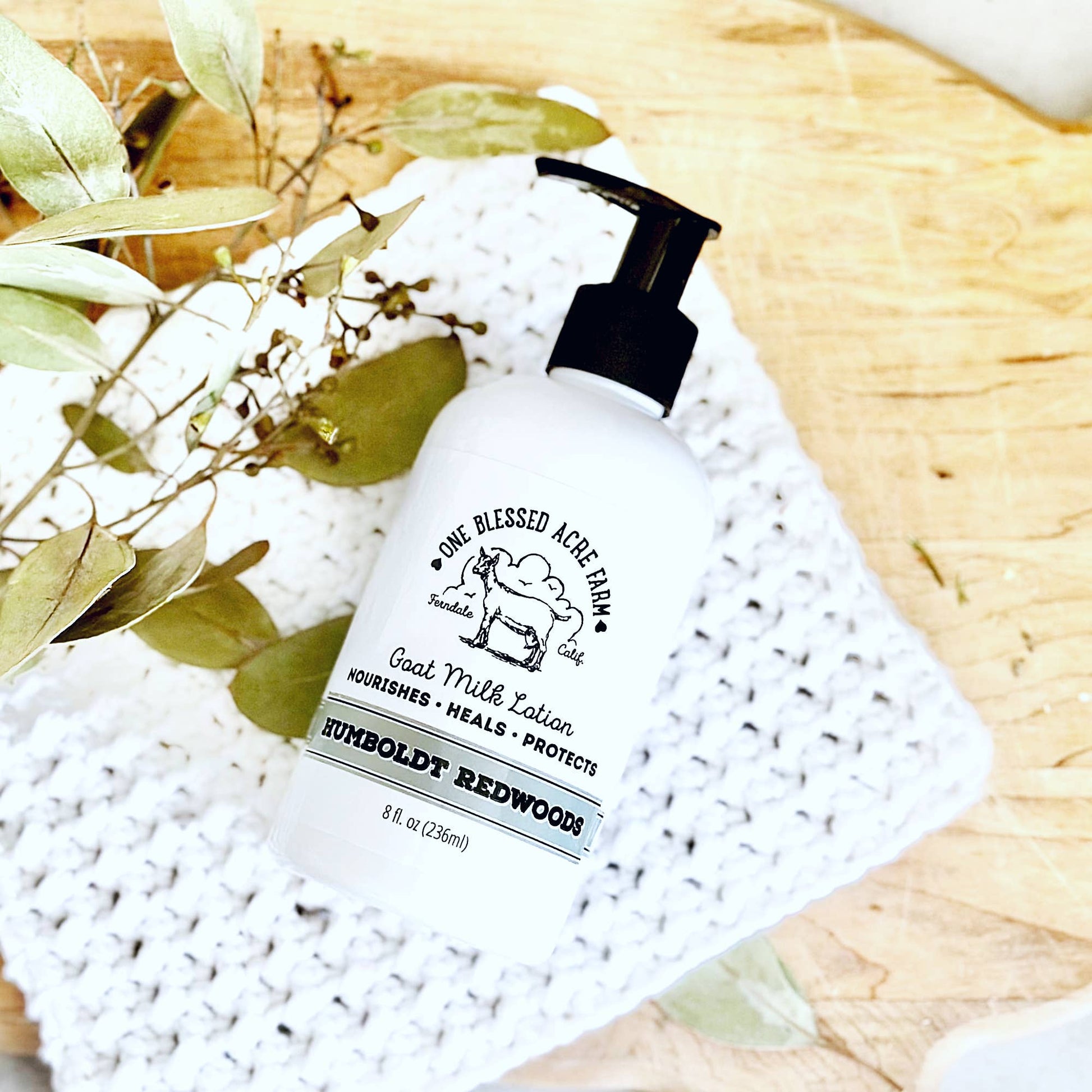One Blessed Acre Farm’s thick, luxurious Goat Milk Lotion is handcrafted in small batches using only the finest and most gentle ingredients. This dreamy-rich, nutrient-dense moisturizing lotion for hands and body is a treat that your skin will love! • Scent: Humboldt Redwoods is a scent of Sun-Warmed figs, Italian Bergamot and white tea leaves.